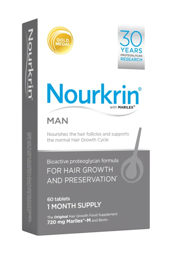 مکمل تقویت مو آقایان Nourkrin به دلیل داشتن ترکیب ماریلکس یک محصول منحصر به فرد در سراسر دنیاست که رضایت مصرفکنندگان را کاملاً جلب کرده است. ماریلکس موجود در فرمولاسیون قرص پیشگیری از سفیدی مو نورکرین بسیار شبیه به ترکیب بیومارین است ولی تأثیرات کمپلکس ماریلکس برخلاف بیومارین ازنظر علمی ثابت شده است. ماریلکس از پروتئینهای موجودات دریایی استخراج شده است. غضروفهای کوسه و صدفها ترکیب اصلی کمپلکس ماریلکس موجود در این محصول را تشکیل میدهند. ماریلکس حاوی ترکیبات مفیدی مانند اسید آمینه لوسین و لسیتین، پروتئوگلیکان ها و گلوکزآمین است که تأثیر مثبتی بر چرخه رشد مو دارند. گلوکزآمین موجود در کمپلکس ماریلکس برای رشد و نوسازی فولیکولهای مو است و پروتئوگلیکانها باعث تحریک رشد موها شده و آنها را در فاز رشد نگه میدارند.