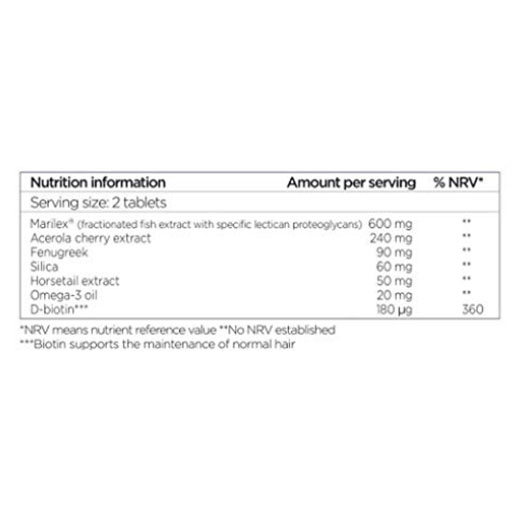 اثربخشی ماریلکس موجود در محصول بارها مورد آزمایش و بررسی قرار گرفته است و مورد تائید متخصصین و سازمان غذا و داروی آمریکا (FDA) میباشد. در هر قرص حدود 300 میلیگرم ماریلکس وجود دارد که این میزان قادر است چرخه رشد مو در انسان را به طرز مؤثری فعال کند. نکته مهم این است که میزان مواد فعال موجود در هر عدد قرص، کاملاً مطابق با حداکثر مقداری است که بدن در طول یک روز میتواند جذب کند و درواقع مصرف مقدار بیشتر، تأثیری ندارد و دفع خواهد شد.