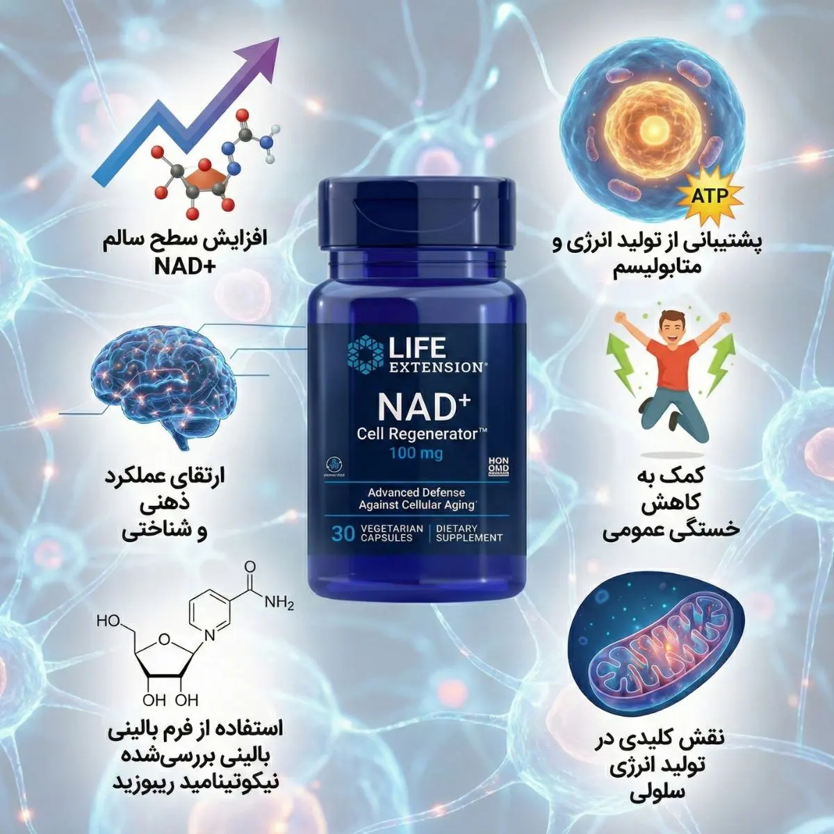 - افرادی که احساس خستگی مزمن یا بیانرژی بودن دارند: کاهش NAD+ با افزایش سن باعث افت انرژی میشود. این مکمل سطح NAD+ را بازسازی کرده و انرژی سلولی را بالا میبرد.