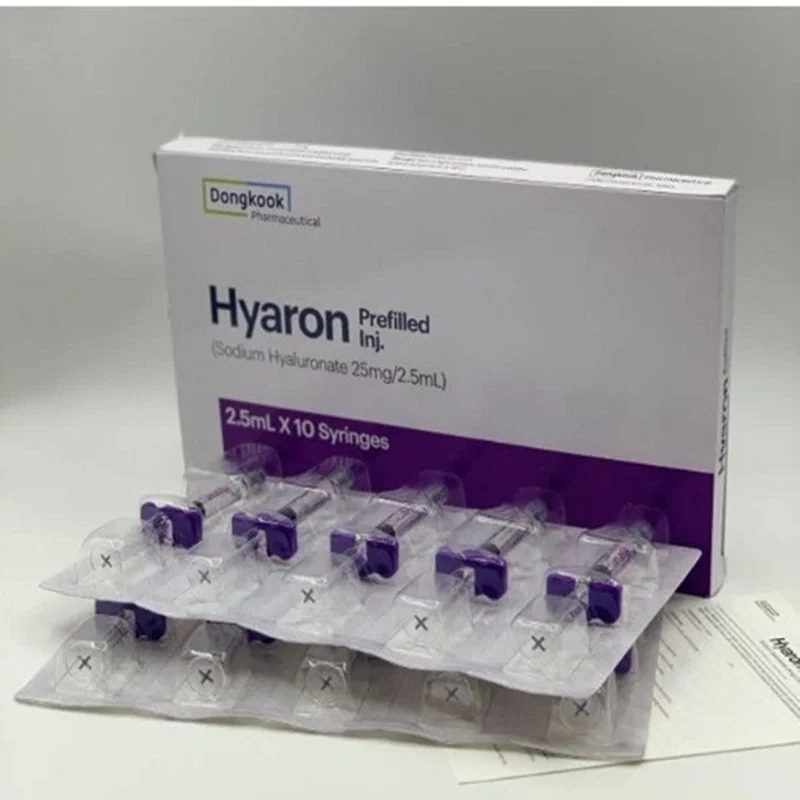 بستههای هیارون شامل ۱۰ سرنگ پر شده با ژل بر پایه هیالورونات سدیم برای تزریق به پوست هستند. هر سرنگ حجم ۲٫۵ میلی لیتر دارد و شامل ۲۵ میلیگرم ماده فعال است. چرخه تزریق معمولی آن یک بار در هفته و دو بار در ماه است. علاوه بر این، این محصول حاوی کلرید سدیم و فسفات سدیم مونوبازیک است.